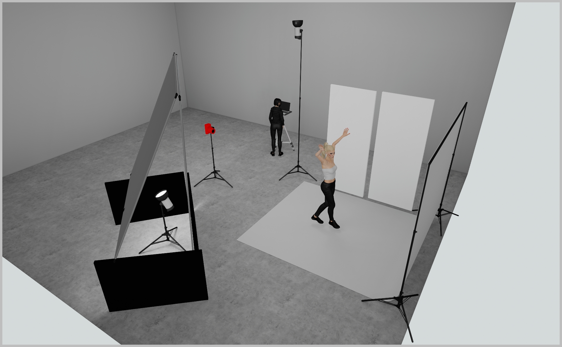 - Position two white polyboards on the far side of the set to fill shadow areas.