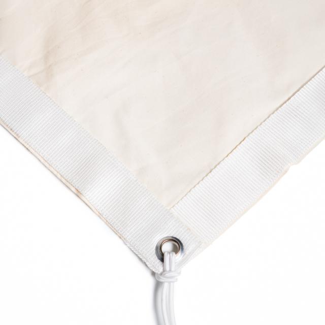 A tightly woven, white cotton fabric treated to remove natural color, resulting in a neutral white tone. Often mounted on frames as a diffusion or bounce surface.